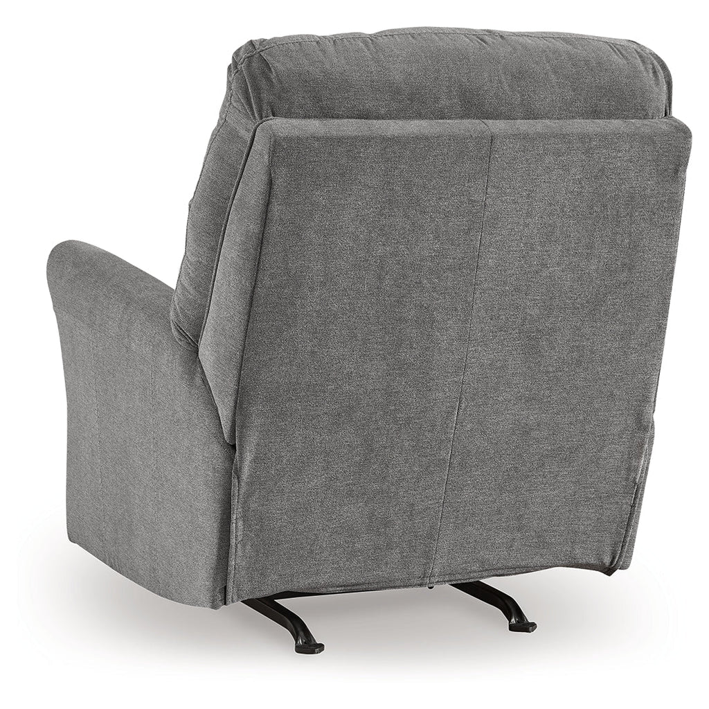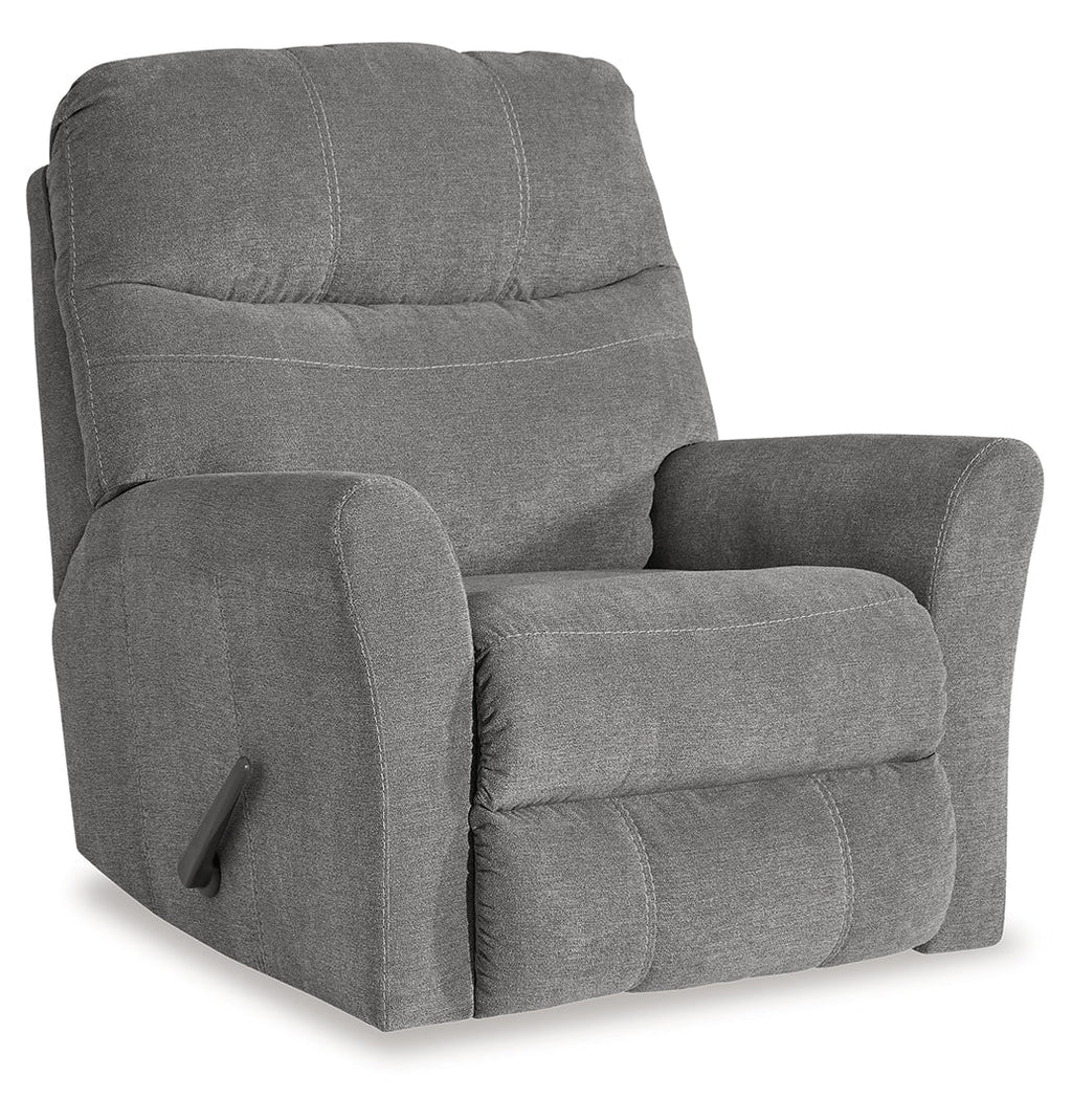 This recliner takes a homey approach to high style. Its denim-inspired fabric has classic versatility, while a contemporary silhouette and stitched details keep the look totally on trend. And you can count on comfort—a one-pull reclining motion seamlessly extends the ottoman.