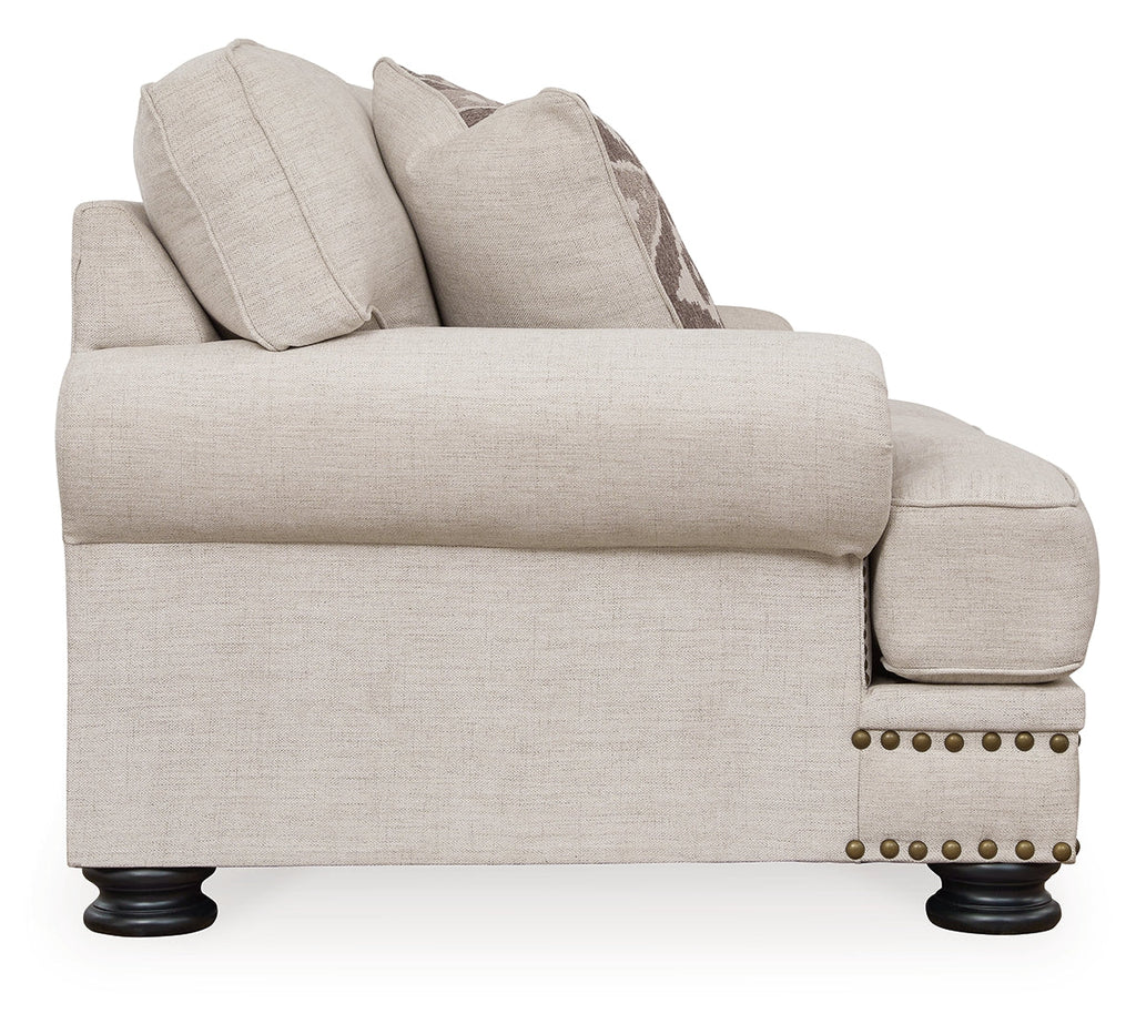 Talk about a looker. The Merrimore loveseat has folks head over heels in love. More than easy on the eyes—with its nailhead trim accents, linen-look upholstery and newfangled decorative turned legs—it’s also got quality and substance. There's room enough for cuddling up with someone special or sprawling out solo.