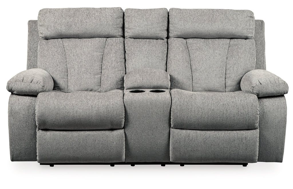 Bring your snacks and beverages and plan for a night with your feet up. This double reclining loveseat is plush in all the right places, and will support you longer than you can binge watch your favorite TV show. The neutral upholstery is ready for a patterned throw blanket and some of your time. Hide the remote in the console and claim your spot on the Mitchiner.