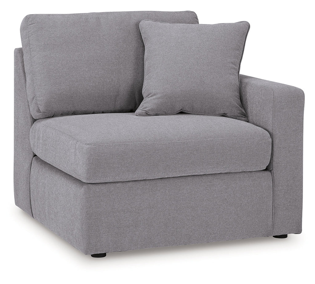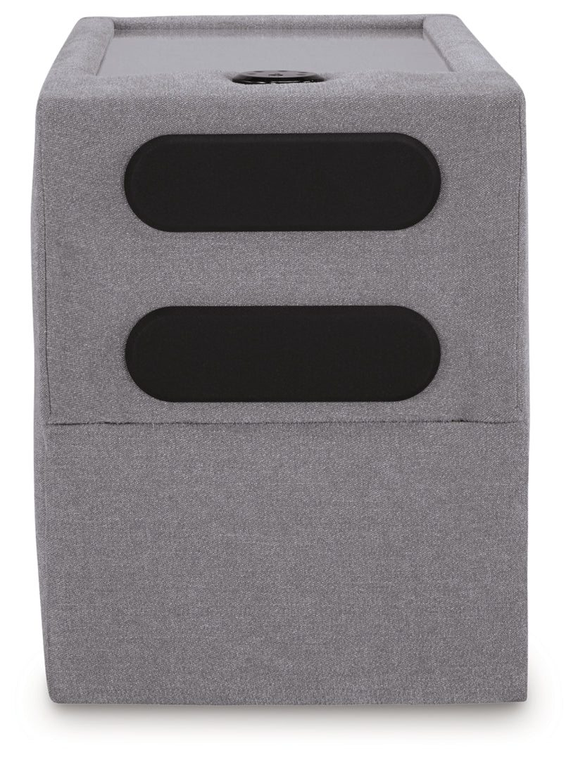 - Includes 3 modular pieces: left-arm facing corner chair, audio console with storage and right-arm facing corner chair