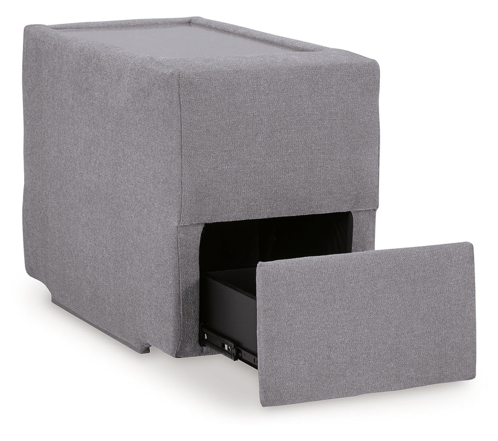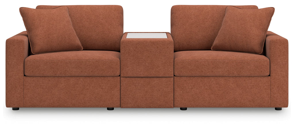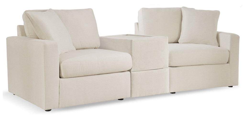 - Includes 3 modular pieces: left-arm facing corner chair, console with storage and right-arm facing corner chair