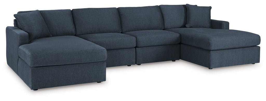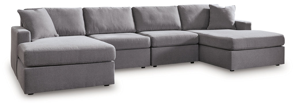 - Includes 4 modular pieces: left-arm facing corner chaise, 2 armless chairs and right-arm facing corner chaise