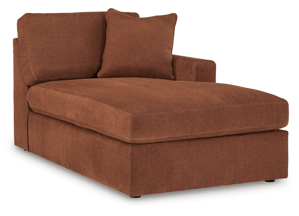 - Includes 4 modular pieces: left-arm facing corner chair, armless chair, console with storage and right-arm facing corner chaise