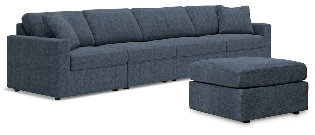 - Includes 4 modular pieces: left-arm facing corner chair, 2 armless chairs and right-arm facing corner chair