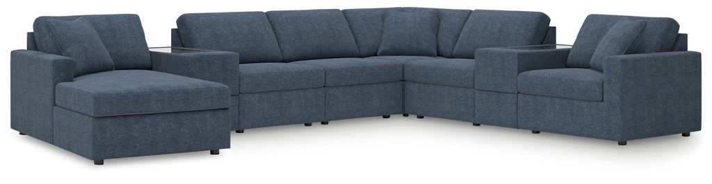 - Includes 8 modular pieces: left-arm facing corner chaise, 3 armless chairs, 2 consoles with storage, wedge and right-arm facing corner chair