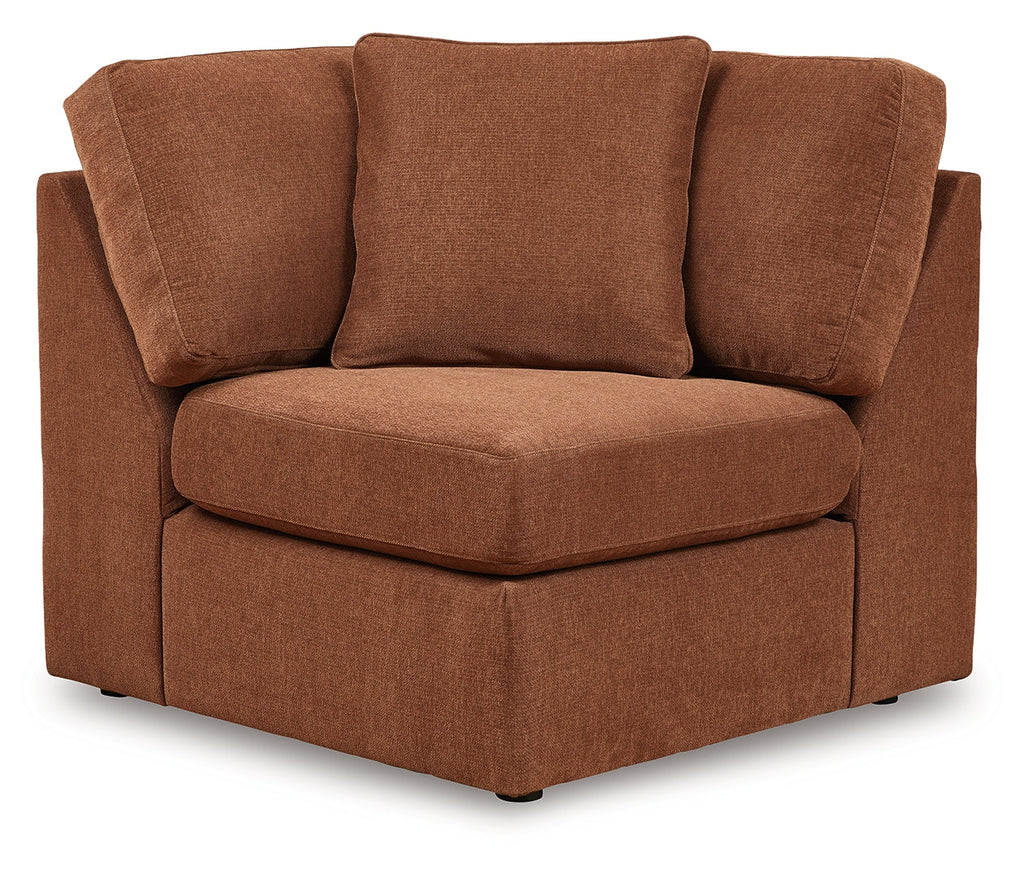 - Includes 8 modular pieces: left-arm facing corner chaise, 3 armless chairs, 2 consoles with storage, wedge and right-arm facing corner chair
