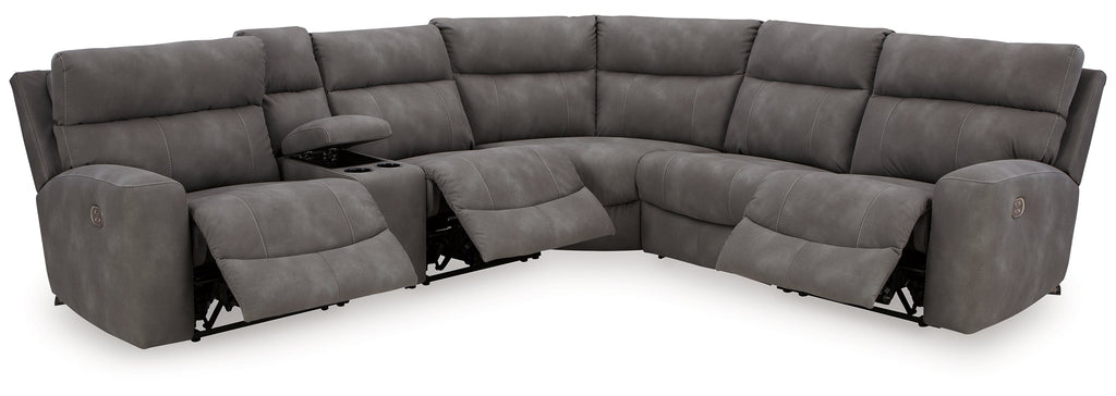 - Includes 6 modular pieces: left-arm facing power recliner, armless chair, wedge, console with storage, power armless recliner and right-arm facing power recliner