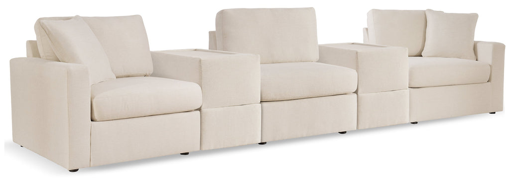 - Includes 4 modular pieces: left-arm facing corner chair, 2 armless chairs and right-arm facing corner chair