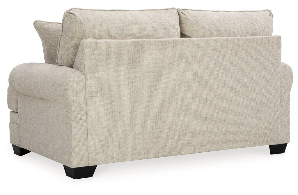 Generously scaled and richly versatile, this loveseat exemplifies the best in timeless classic style. It's splendidly tailored with transitional roll arms, for a look that's traditional yet far from stuffy. Light, fresh and loaded with multi-textural interest, the loveseat's soft chenille upholstery is pure pleasure for the senses. Accent pillows with soothing neutral tones are a natural fit.