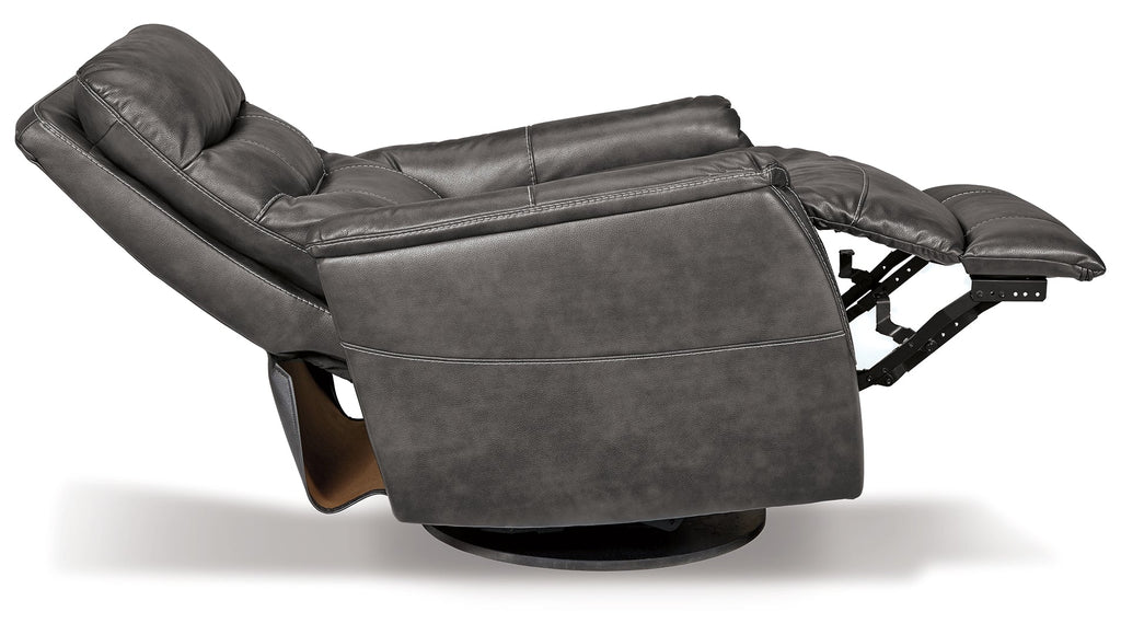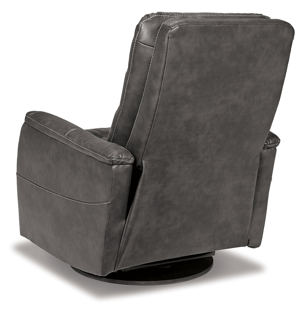If you agree it’s high time for better form and function from your furniture, this swivel glider recliner with gentle rocking motion might be just your style. Indulgently comfortable yet anything but bulky, its space-conscious design pairs slimmed-down armrests with a roomy seating zone for maximum comfort. Rest assured, the sumptuously cushioned 41" high back is head and shoulders above the rest. Thanks to an EZ Pull tucked discreetly inside the armrest, while this faux leather chair may be a recliner, it sure doesn’t look like one.