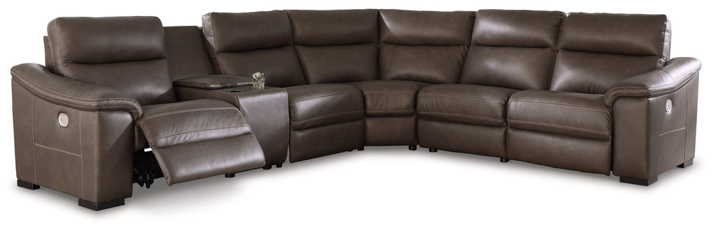- Includes 3 modular pieces: left-arm facing power recliner, console with storage and right-arm facing power recliner