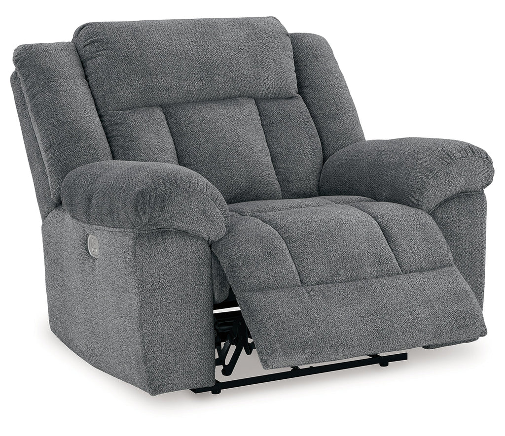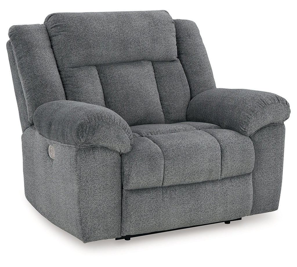 Big, bold comfort. Game time and movie nights meet their match with this power recliner. Made for ultimate indulgence, an extra-deep seat encourages you to sit back and bliss out. Customize the recliner and headrest to find your ideal viewing position with effortless one-touch controls. And with plush upholstery in a trendy hue, you won’t need to sacrifice style for cozy seating.