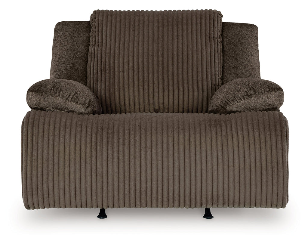 Experience unparalleled comfort with this rocker recliner. It’s a stylish and invitingly soft look—made all the more appealing by cozy corduroy cushions that feel great and add a touch of texture. The rich chocolate brown upholstery effortlessly blends into your decor, making it a gorgeous addition to your home. So sit back and unwind in this spacious recliner, perfect for gatherings with friends and family.