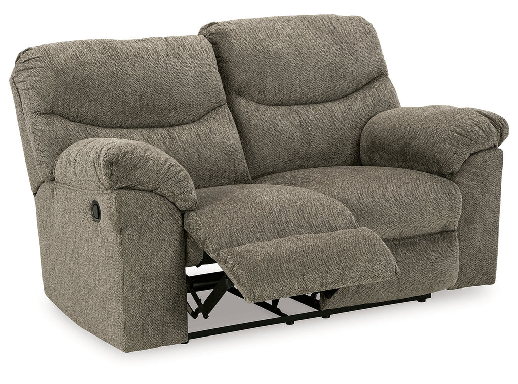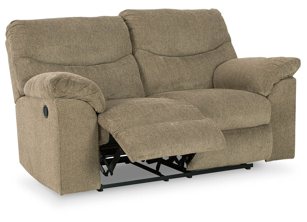 Sincere in its styling, this reclining loveseat invites a relaxed sensibility into your space. Its neutral upholstery has a universal appeal, with pull-tab reclining making it easy to kick back in comfort. Providing high-quality functionality at an affordable price, this loveseat marries well with a myriad of design aesthetics.