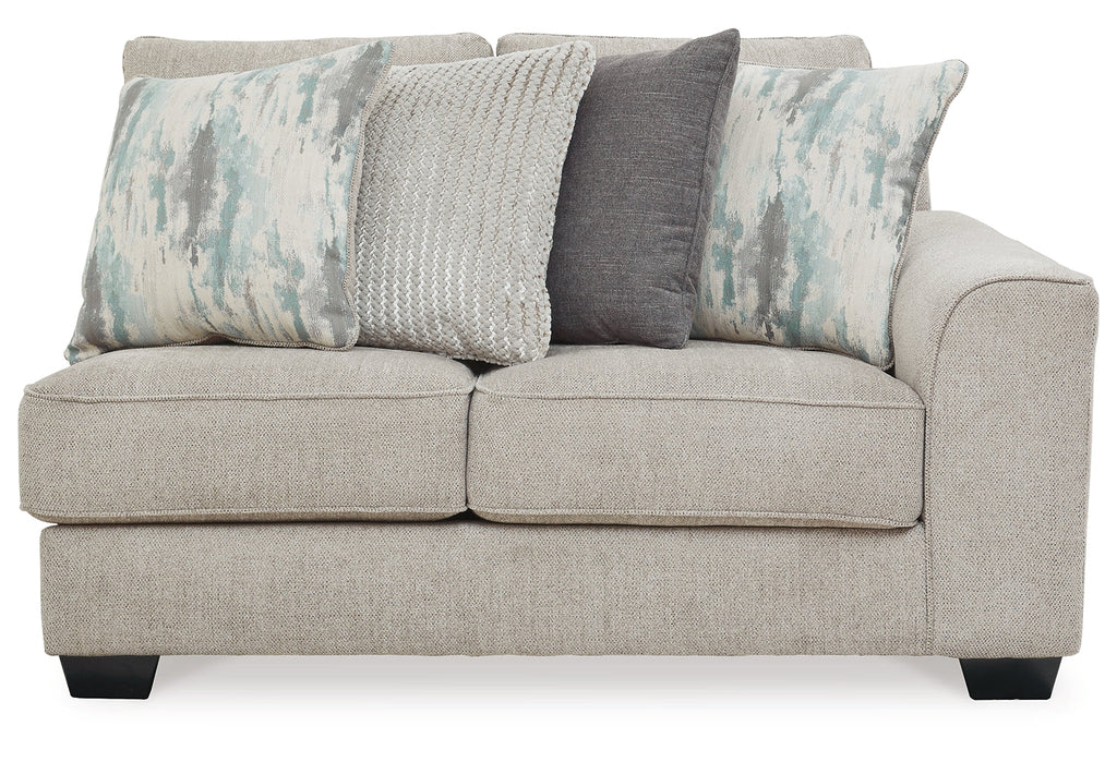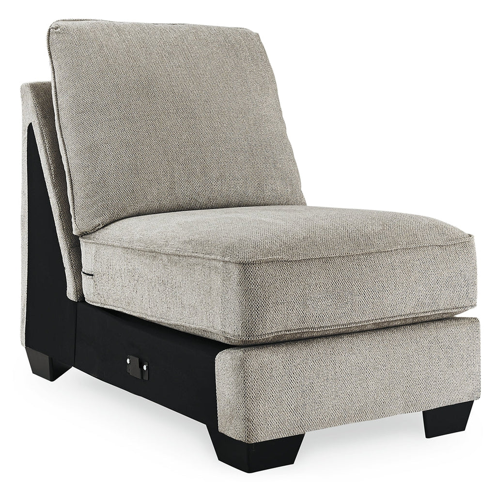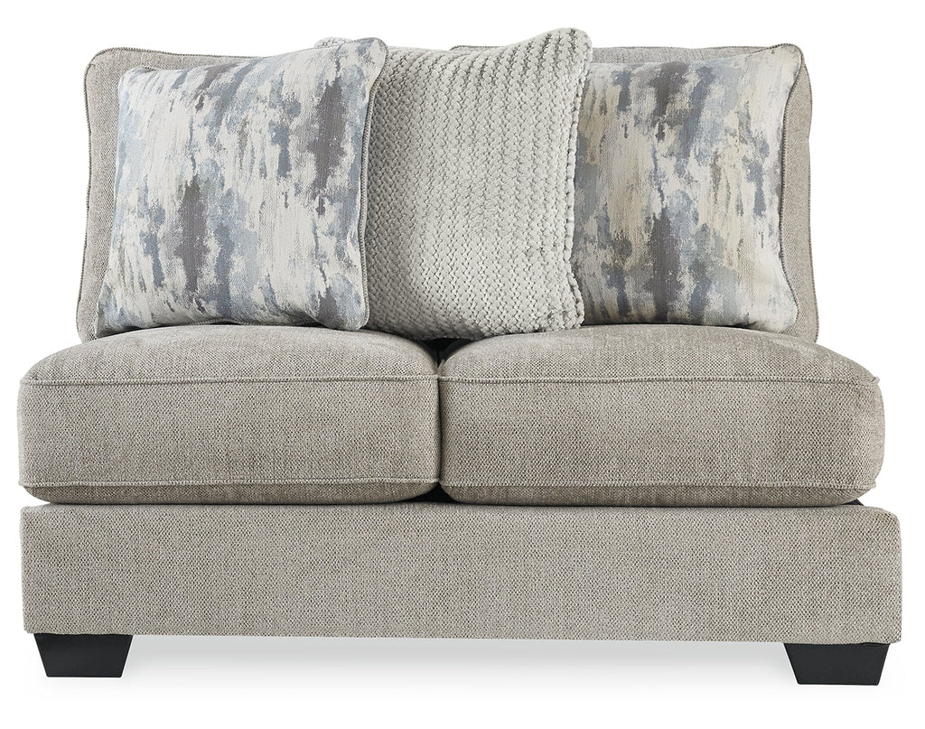 - Includes 5 pieces: right-arm facing corner chaise, armless loveseat, armless chair, left-arm facing sofa and wedge