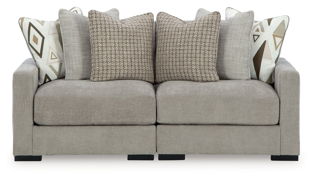 Customizable, contemporary comfort. This modular loveseat sectional changes as your living room needs do. You can stage and rearrange as you please, whether it’s for family TV time, hosting guests or a simple style refresh. Adding to the sectional's versatility: a goes-with-anything neutral hue. And it keeps your relaxation a priority, with ultra-plush feather blend seat cushions rounding out the upscale design.