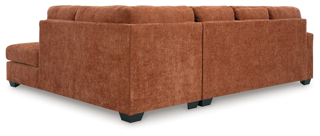 - Includes 2 pieces: left-arm facing corner chaise and right-arm facing sofa