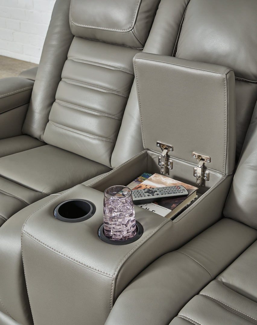 With its fashion-forward sense of style, this power reclining loveseat has you covered with high-tech advancements and down-home comfort. combination leather and faux leather upholstery keeps luxury comfortably within budget. Love being pampered? With the touch of a button, experience the pure bliss of an air massage system (with three settings), or chill out with the heated seat element. Distinctive elements of this power recliner include contemporary waterfall tufting that beautifully goes with the flow and a zero-gravity mechanism further raising the ottoman for better blood flow.
