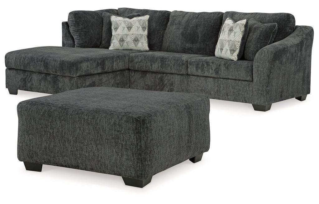 - Includes 2 pieces: left-arm facing sofa and right-arm facing corner chaise