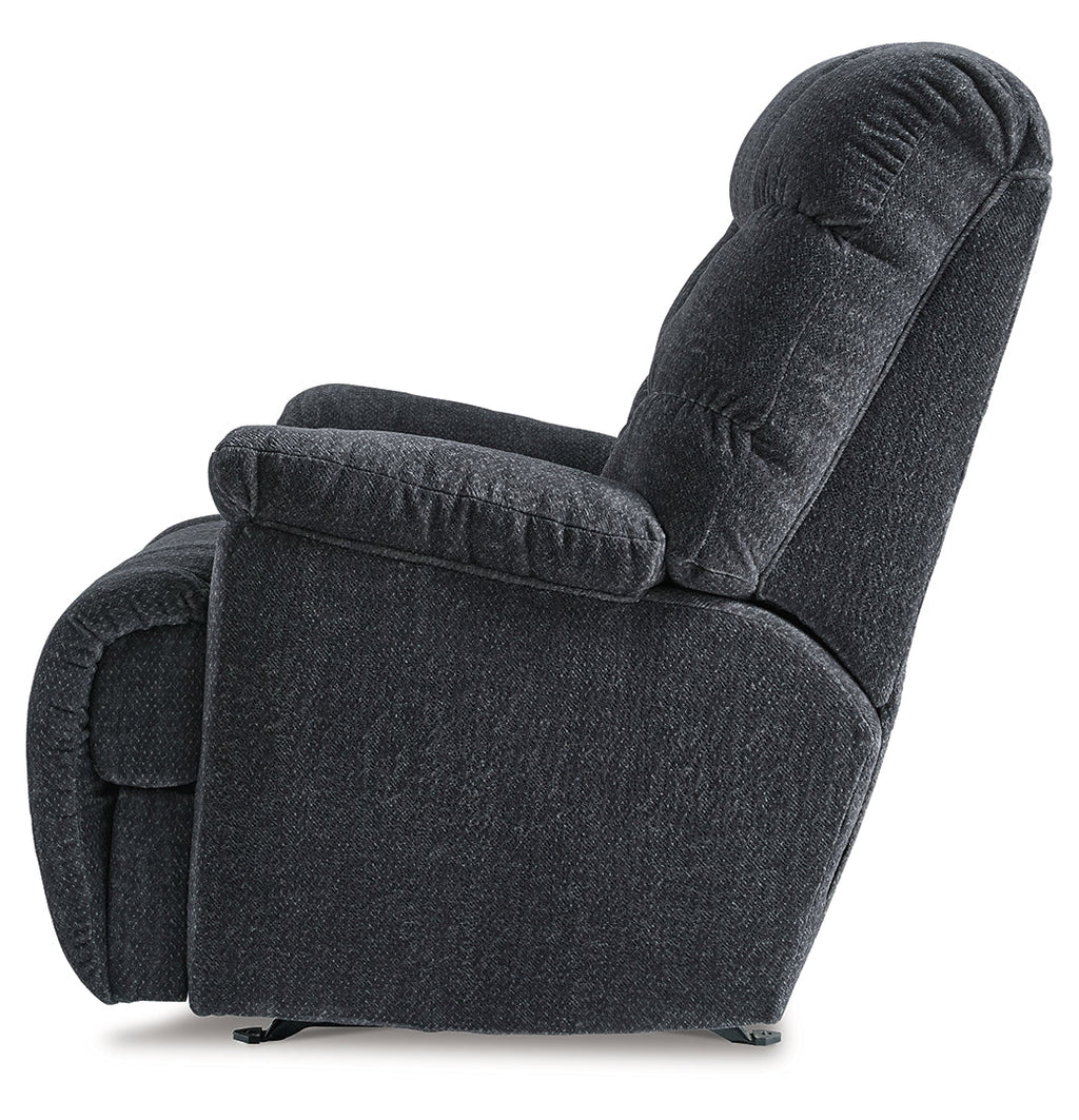 Sit back, relax and kick up your feet. Immerse yourself in total comfort as this rocker recliner embraces you with the cool look of leather and the warm, cozy feel of fabric. Plush, pillowy cushions, an oversized headrest pillow and wide pillow top armrests feature heavyweight stitching in a delicious mocha hue. The warm, welcoming look fits easily with other colors in the room and is right at home with a variety of design styles. A comfortable big and tall high-back profile allows an abundance of softness that is over the top.