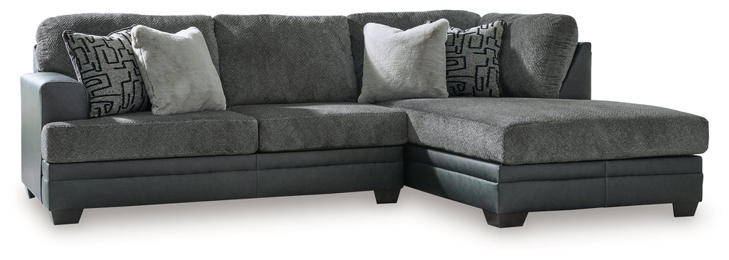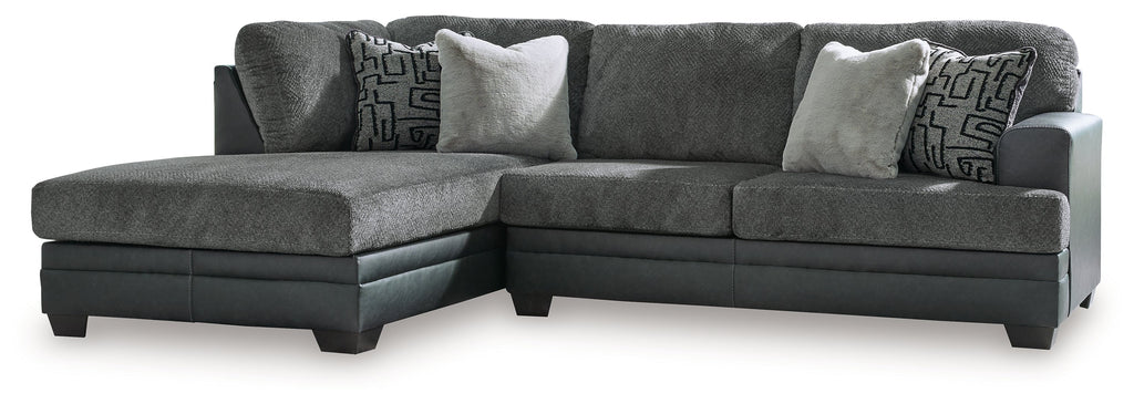 - Includes 2 pieces: left-arm facing sofa and right-arm facing corner chaise