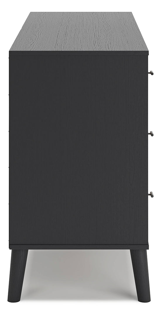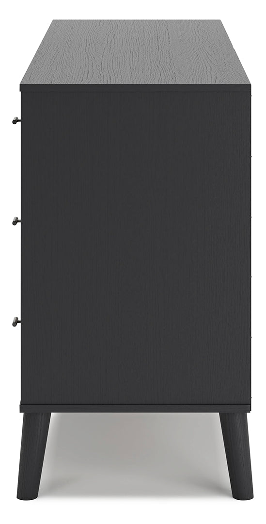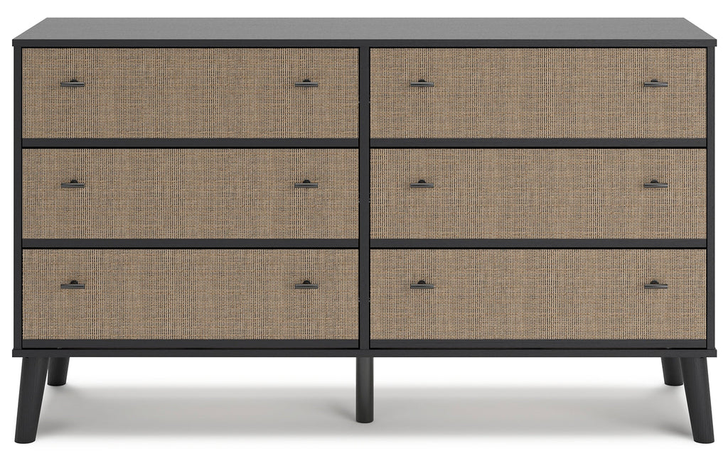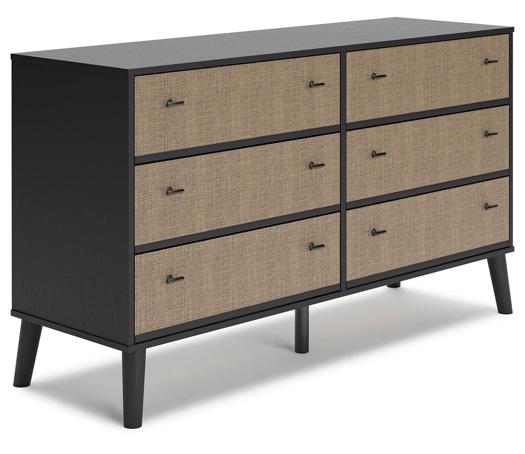 Put a retro spin on current trends with this dresser. Its mixed-material look of matte black and replicated beige cane brings a casually cool feel to your bedroom. Simple, sleek hardware and splay legs round out the urban meets mid-century vibe.