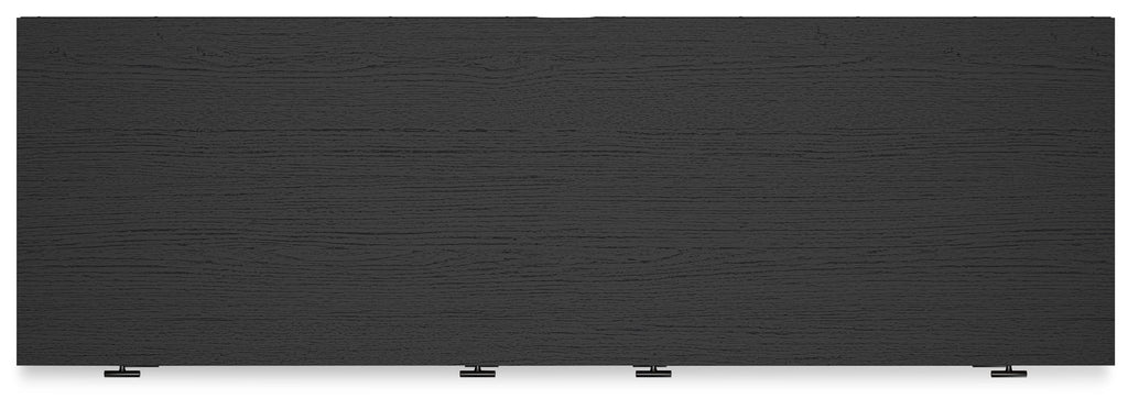 - Matte black finish with subtle replicated wood grain
