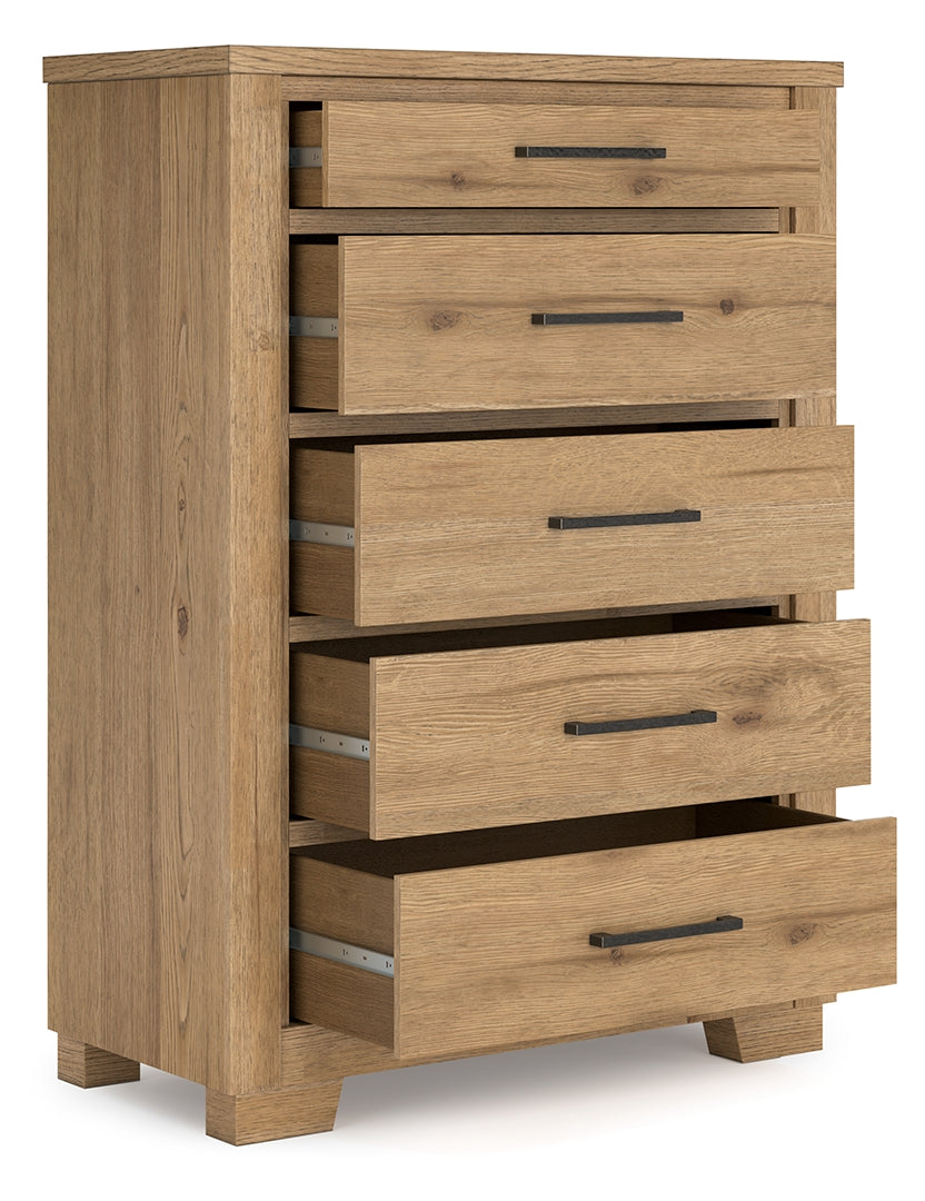 - 5 drawers with fully finished interior, dovetail construction and ball-bearing side glides