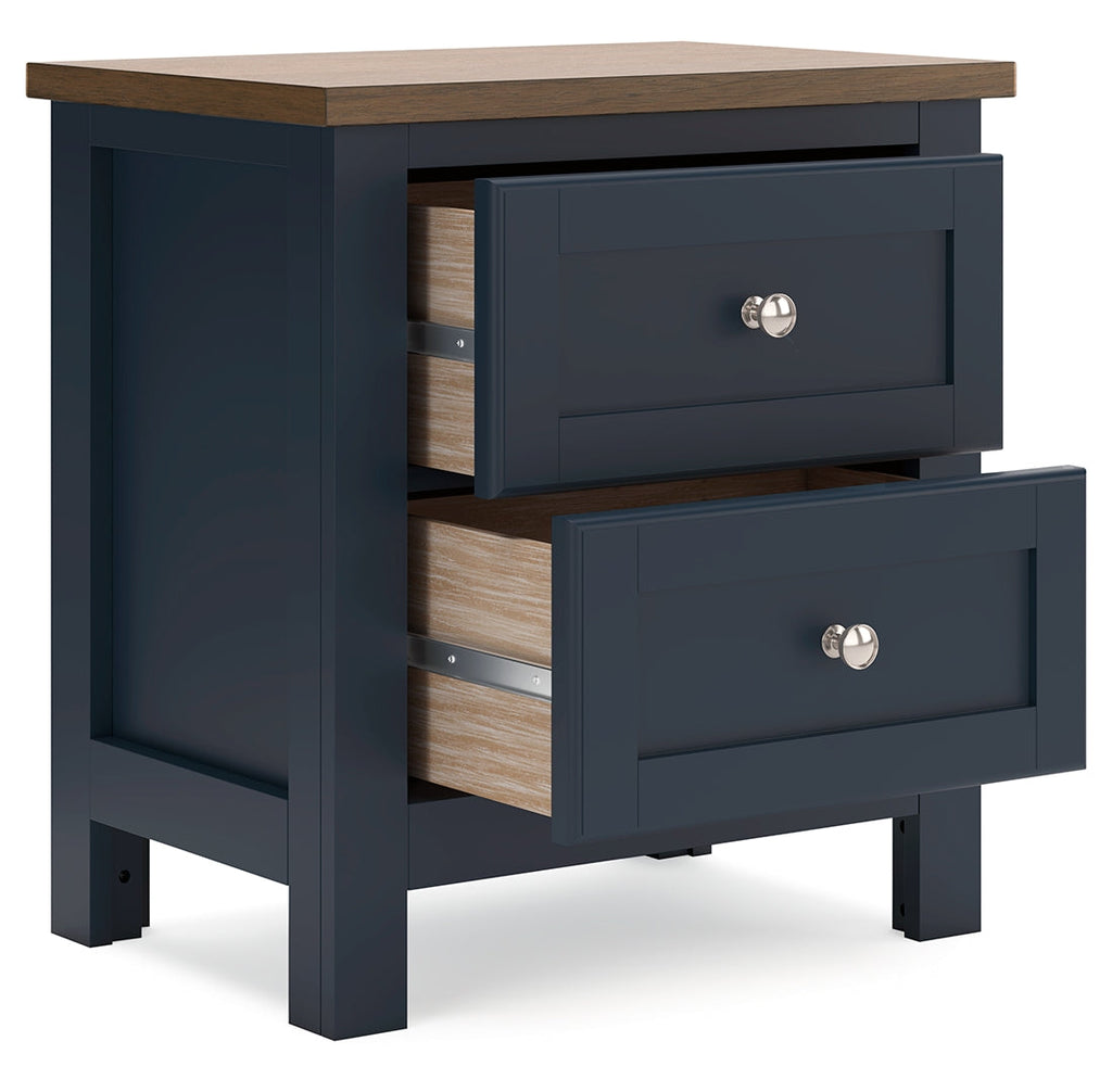 Add homespun charm to your restful retreat. A modern take on a timeless silhouette, this nightstand pairs a dark slate blue finish with a light brown top. Drawer fronts and legs in a classic Shaker style bring an air of beautiful simplicity to the bedroom. Whether it's part of a charmingly curated guest suite or a casually carefree kids room, this nightstand is a welcome addition.