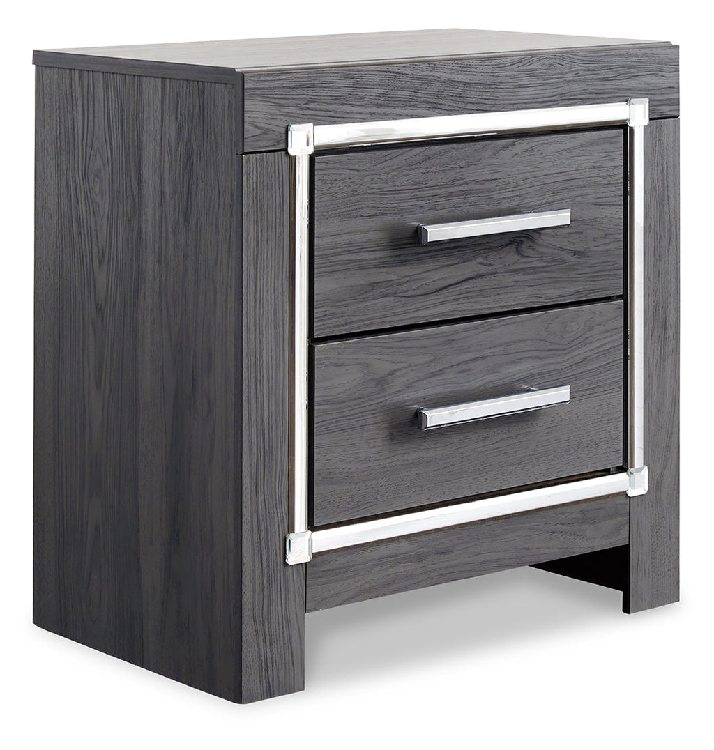 Reminiscent of Hollywood glamour of yesteryear, this nightstand interprets luxury in a decidedly modern way. A dazzling gray finish with faceted chrome-tone accents enhance the star power, while two smooth-gliding drawers provide convenient bedside storage. Offering the best of both worlds, this nightstand includes USB or wireless device charging.