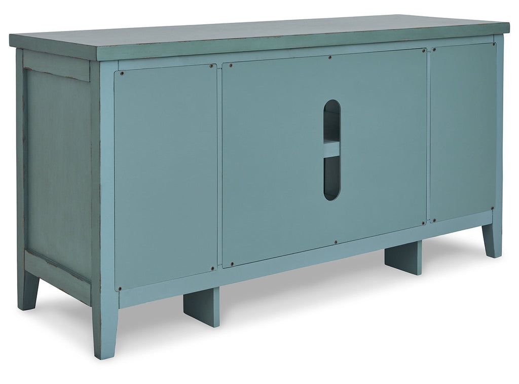 Bring the vintage casual vibe you love to the living room with this TV stand. A stylish storage solution in a black finish, this charming piece completes your entertainment area with ease. Open shelves and the included handwoven baskets provide an effortlessly beautiful look with endless possibilities.