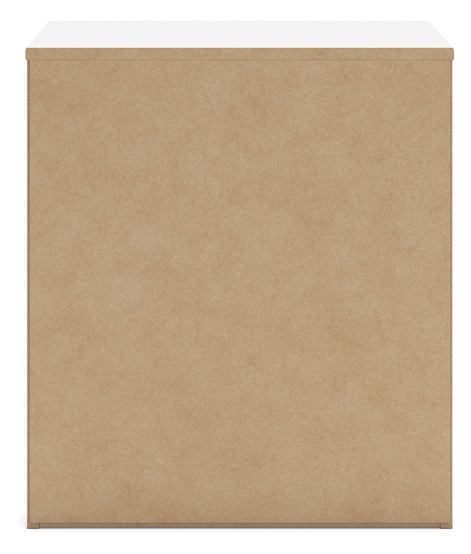 - Drawer interiors are lined with a faux linen laminate for a clean, finished look