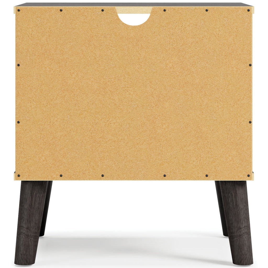 The perfect marriage of contemporary and casual style, this nightstand is a charming addition to your home. It's expressive with a two-tone look in a solid matte white finish and a replicated sugarberry wood grain pattern. White knobs and splay legs add a finishing touch, while the open shelving allows for extra storage.