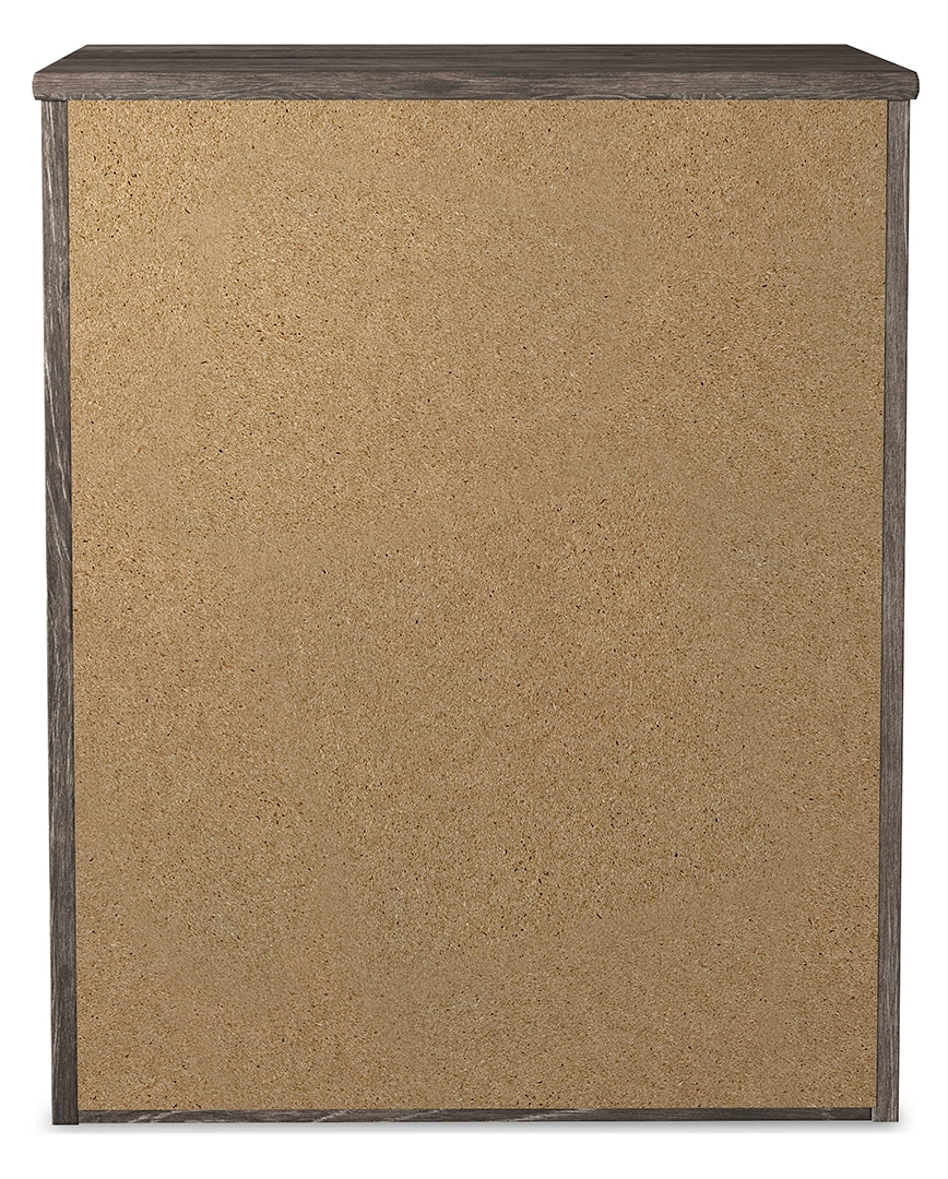 With its clean-lined look and modern attitude, this nightstand is a fresh style awakening. A warm gray hue over replicated oak grain easily complements other furniture finishes. Smooth drawer fronts with antiqued pewter-tone handles complete the aesthetic.