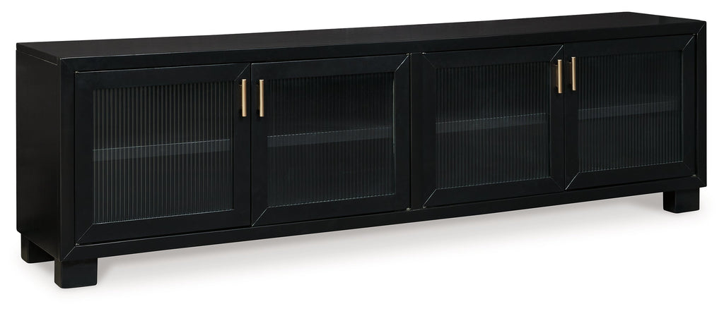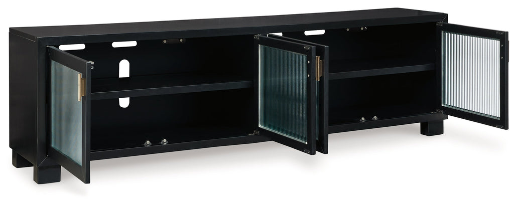 If you are a lover of simplicity, this TV stand is the perfect choice. With a black finish, a casual contemporary design and spacious storage cabinets, it provides functional style wherever it’s displayed. And this large media cabinet accommodates flat-screen TVs up to 85 inches.