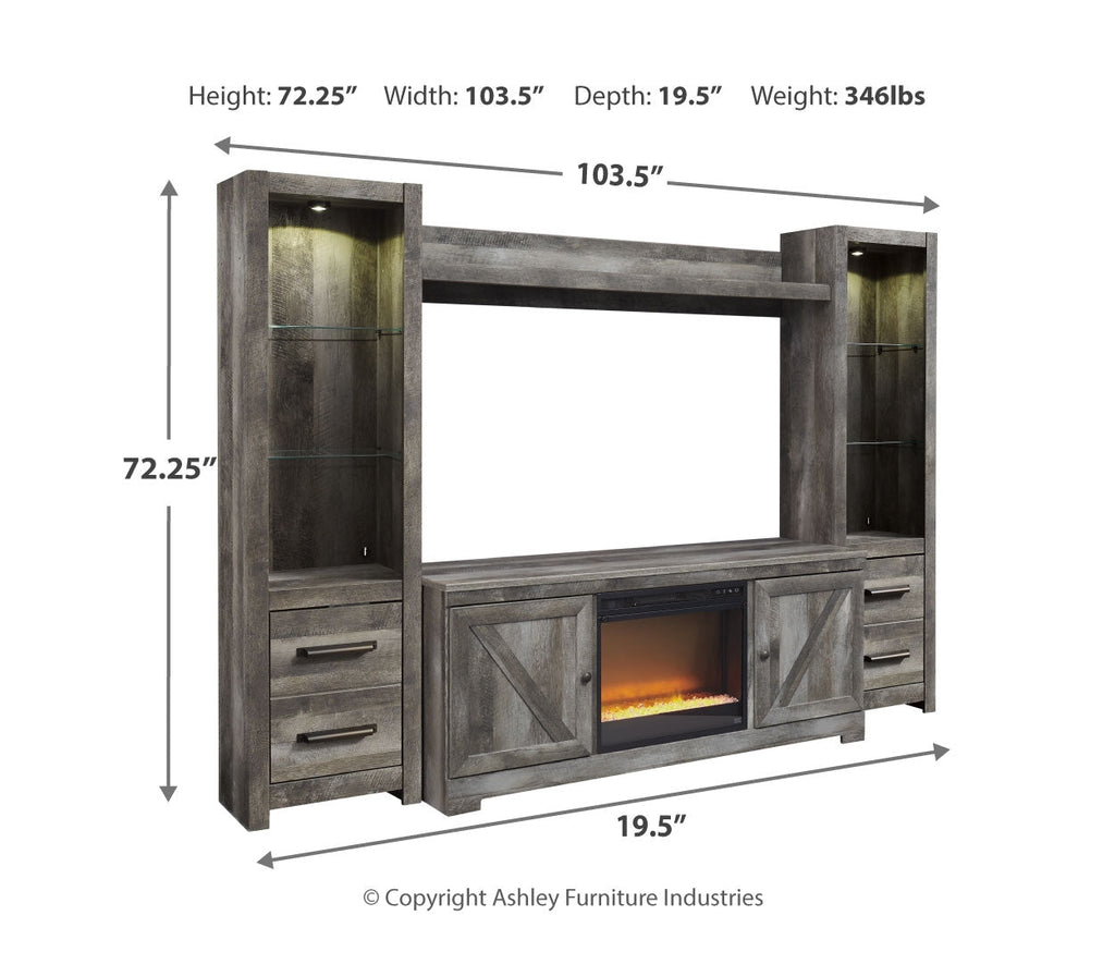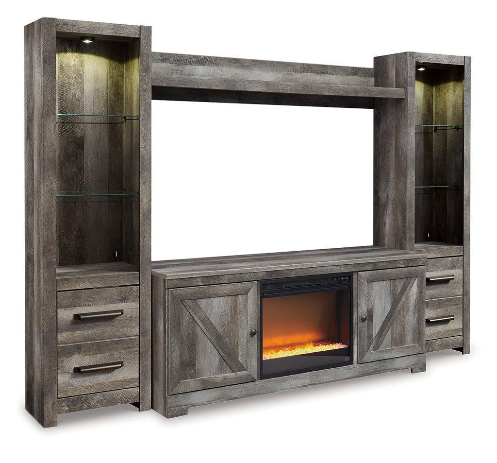 - Includes TV stand, 2 piers, bridge and electric fireplace insert (W100-02)