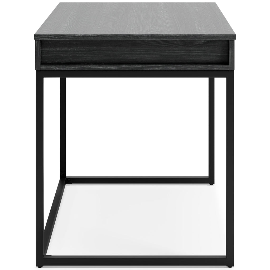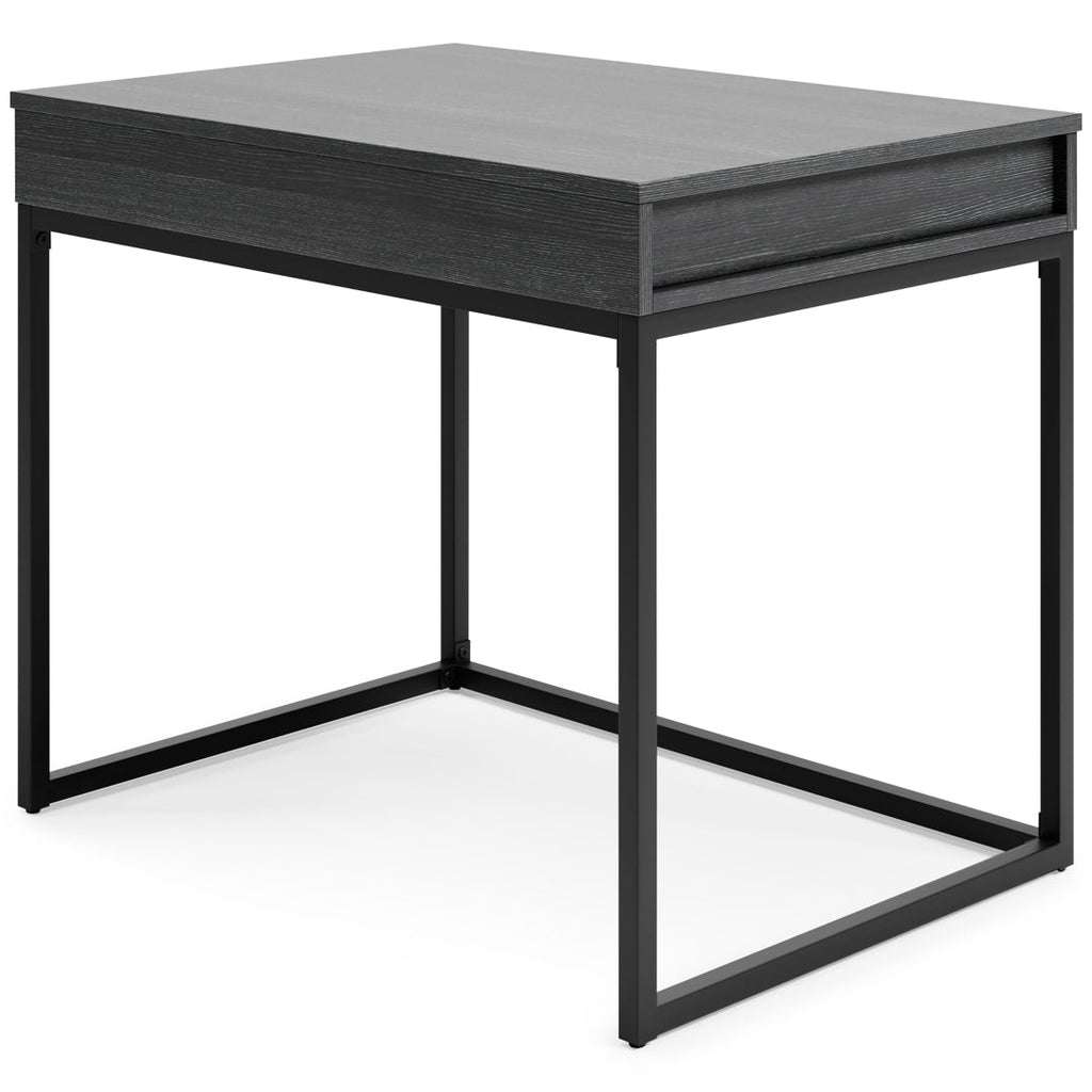 Elevate your home office with this simply sensational lift-top desk. Pairing a dark wood grain look with a black metal base for modern appeal, this minimalistic desk is dressed to impress in a no-muss, no-fuss way. Small storage bins underneath the sleek lift top bring added function.