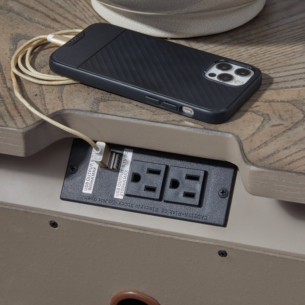 Merging traditional elegance with contemporary comfort, this nightstand takes your bedroom retreat to the next level. Serpentine curves, ash swirl veneer inlays on the top and a glazed antiqued-look finish radiate timeless sophistication. Drawers are packed with ample bedside storage possibilities. A convenient 110V power supply and USB charging add a modern touch to this stunningly refined piece.
