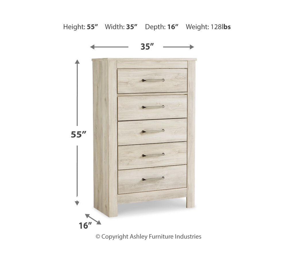 - 5 smooth-gliding drawers (lined with faux linen laminate)