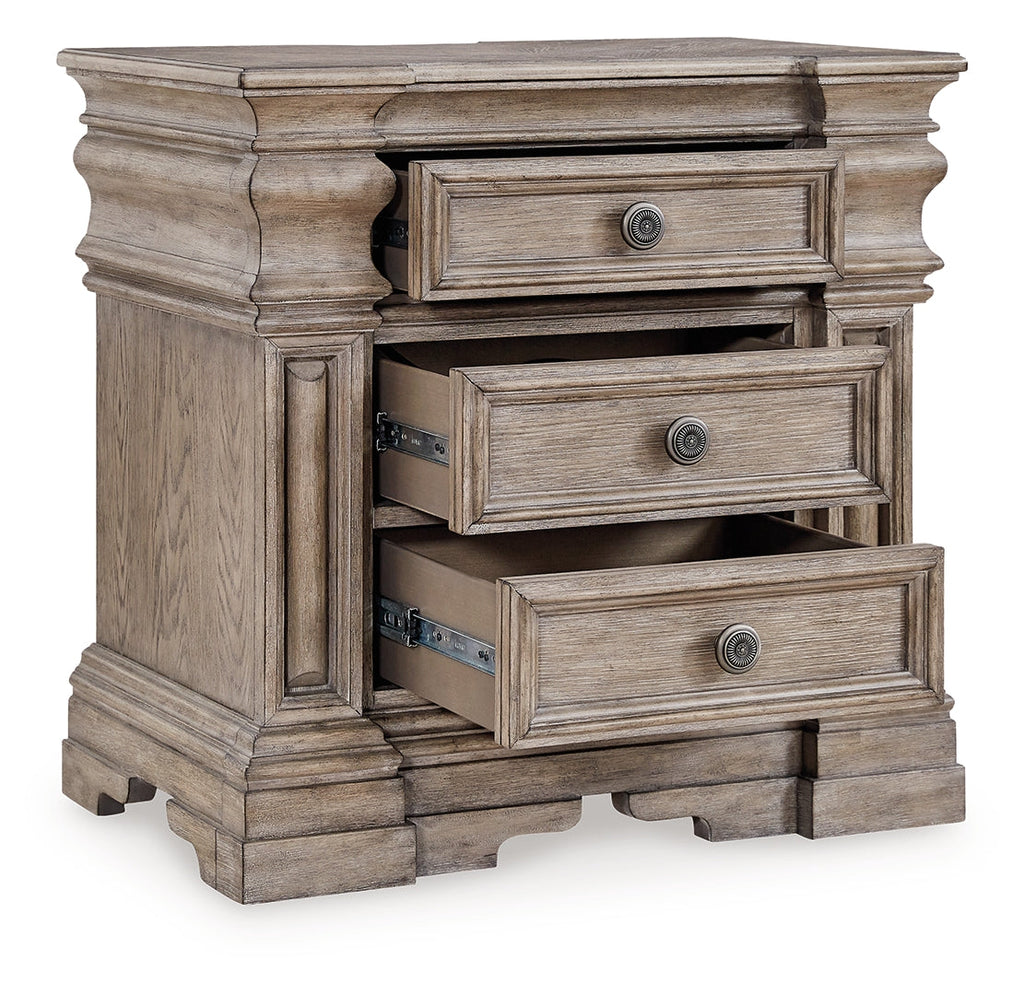 Discover something exceptional with this nightstand. Its impressive silhouette offers a casual traditional aesthetic, embodied by classic-inspired columns and a relaxed grayish brown finish. Casually cool drawers with inset framed fronts are packed with ample space for all your bedside essentials. Bedside charging for your go-to devices is made easy with power outlets and USB ports.