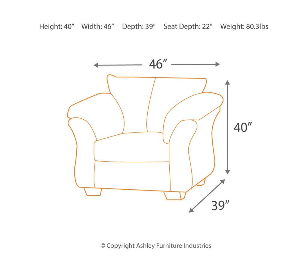 Talk about fine lines and great curves. That’s the beauty of this standout chair—made to suit your appreciation for simplicity and love of contemporary style. A striking flared frame, comfy pillow top armrests and an ultra-soft upholstery that holds up to everyday living complete this fashion statement.