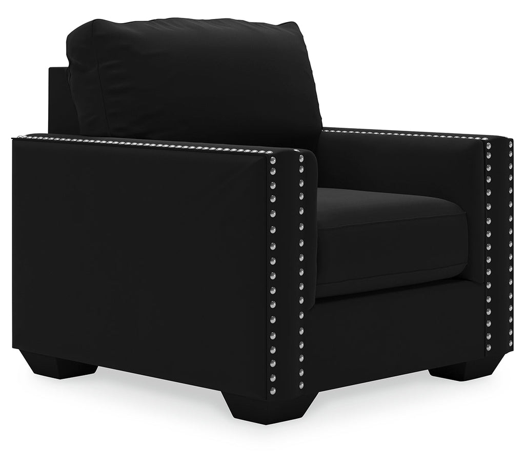 Raise your standard of living with this chair in onyx black. Reserved exclusively for those with a penchant for high-glam home decor, this ultra-chic chair is dressed to impress with a clean-lined profile and sleek track arms punctuated with nailhead trim. Easy on the eyes and alluring to the touch, this decidedly contemporary chair is covered in a low-pile soft velvet that’s impossible to resist.