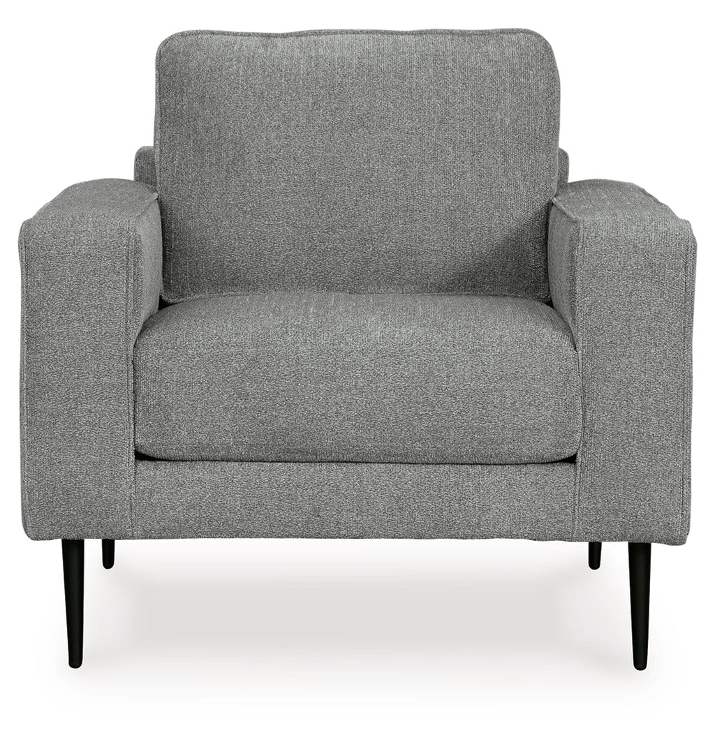 Simple comfort meets modern function in this chair. An apt addition to apartments and other small spaces, the slim-profiled piece welcomes you with its cozy character. A subtle chevron pattern on the cushions refresh the classic neutral hue, elevating the look while still suiting a variety of styles. Black accent legs add a dash of contemporary flair.