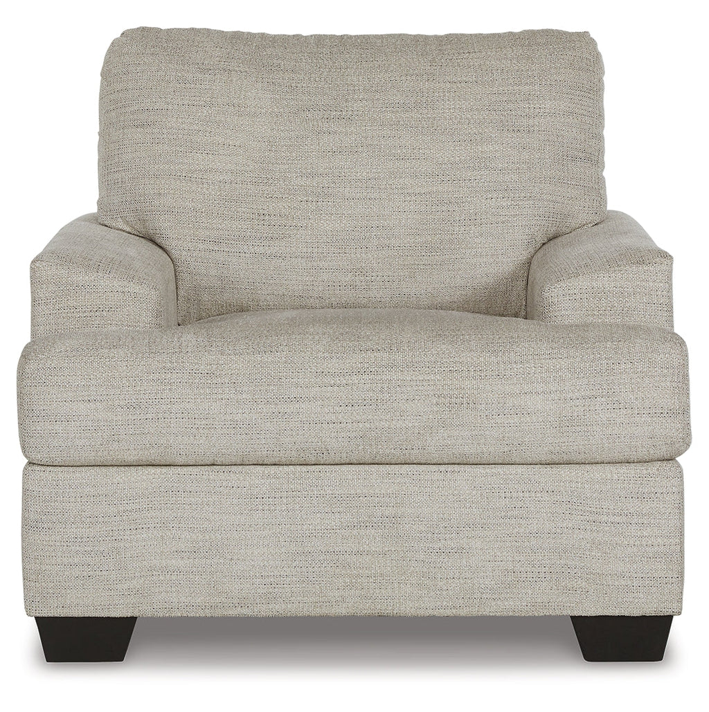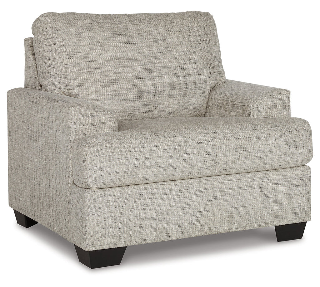 Laid-back luxury meets neutral practicality in this chair. Taking its cues from contemporary design, the clean-lined piece is outfitted with... Laid-back luxury meets neutral practicality in this chair. Taking its cues from contemporary design, the clean-lined piece is outfitted with angular arms for a layer of geometric expression. A softly upholstered, sizable cushion keeps you comfortable when relaxing solo. With this chair, winning style and superb functionality go hand in hand. Corner-blocked frame Attached back and loose seat cushion High-quality foam cushions wrapped in poly fiber Polyester upholstery Exposed feet with faux wood finish Platform foundation system resists sagging 3x better than spring system after 20,000 testing cycles by providing more even support Smooth platform foundation maintains tight, wrinkle-free look without dips or sags that can occur over time with sinuous spring foundations Color: Pebble InchesMetric : 39" W x 38" D x 37" H More Dimensions: Arm height : 24" Distance between arms : 22" Seat depth : 21" Seat height : 20" Top of cushion to top of back : 17" Leg height : 3" Minimum width of doorway for delivery : 36" Carton: InchesMetric : 40" W x 38" D x 35" H Express Shipped: InchesMetric : 40" W x 38" D x 35" H Weight : 78 lbs. Cubes : 28 ft UPC : 024052842555 Unit of Measure:EA Qty Per Carton:1 Number of Seats:1 Construction Information: Qty (1) (0) (0) - - Description loose seat cushions back cushion casings other pillows tight seat tight back Cover Name:Vayda Location:Body Cleaning Code:WS - Water/Solvent Contents:Polyester 100% Weight : 78 lbs. | Cube : 28 ft View more