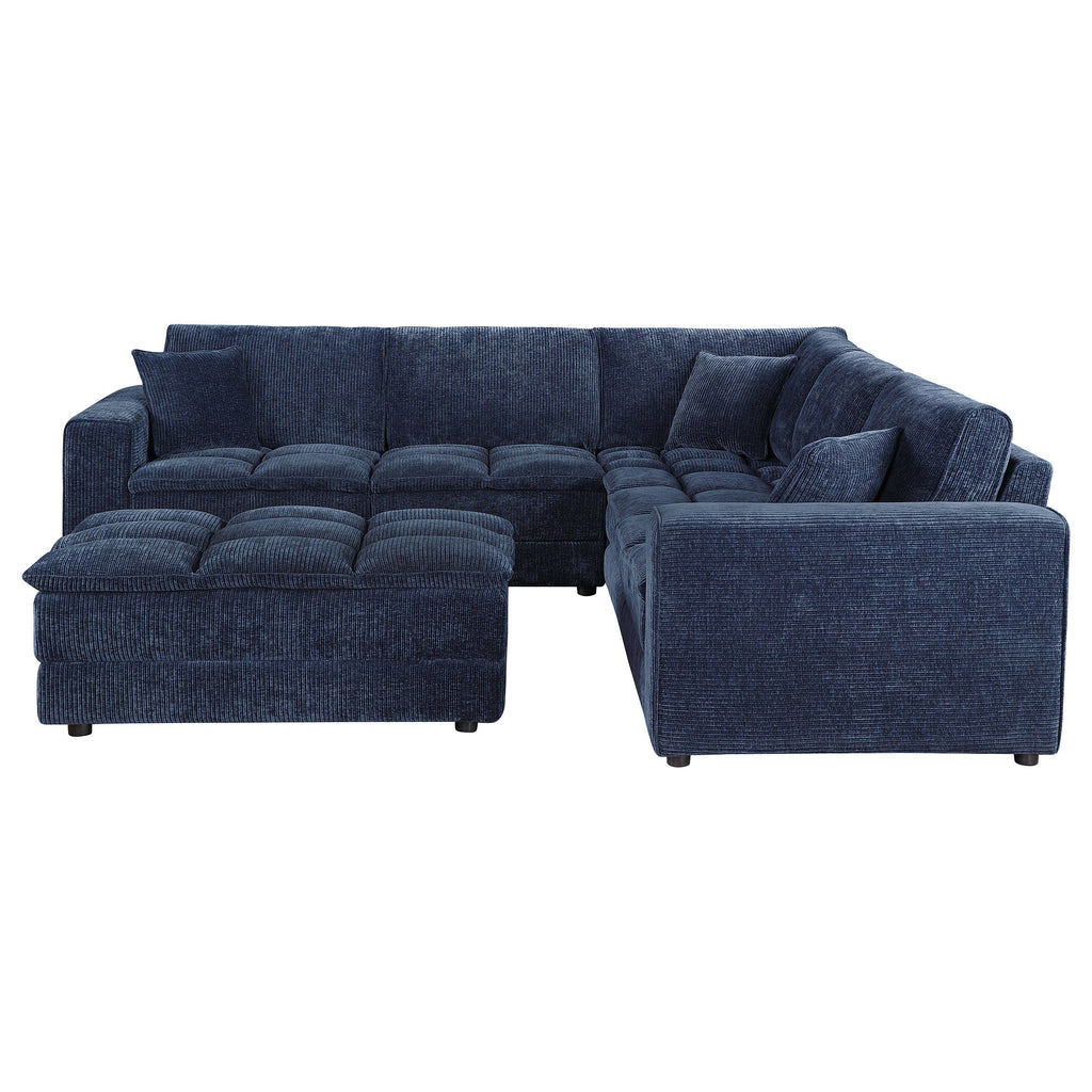 Includes: One (1) LAF chair, two (2) armless chairs, one (1) corner, one (1) RAF chair, and one (1) ottoman