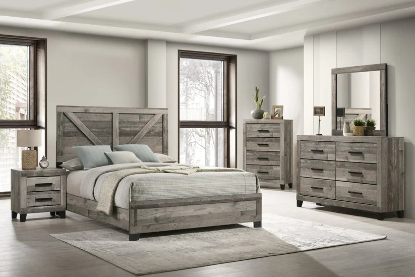 The B1325 Balo collection in elegant grey offers a complete bedroom set designed for style and functionality. Available in queen and king bed sizes, this set includes a chest, dresser, mirror, and nightstand, providing ample storage and a cohesive look. Its sleek grey finish brings a modern, calming touch to any bedroom, making it a perfect choice to create a sophisticated and organized space you'll love to unwind in.