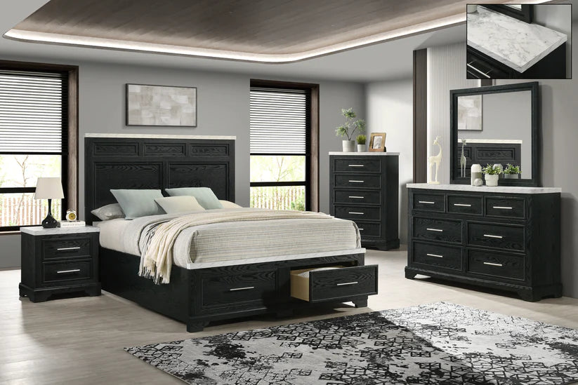 Meet the B1350 Tove—where luxury meets practicality. This striking storage bed features a sleek black design crowned with an elegant white faux marble top that commands attention. The boxspring-free construction gives you flexibility in setup while revealing spacious storage compartments perfect for organizing bedding and personal items. Experience the perfect balance of contemporary elegance and smart storage solutions that make the most of your bedroom space.