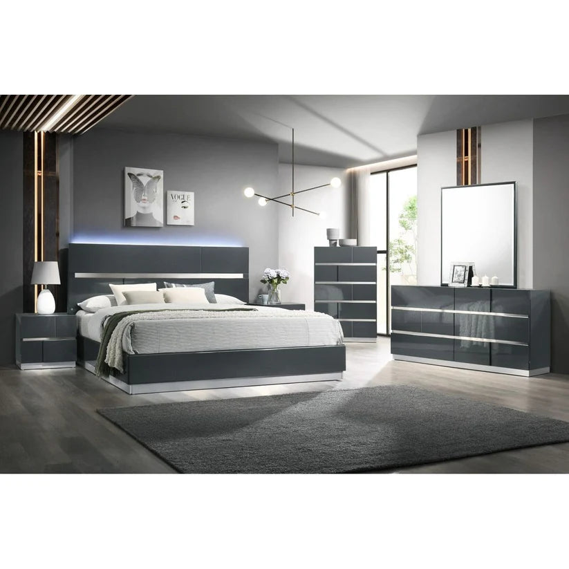 The B55 Verona Collection is designed for the contemporary home that prioritizes clean lines and functional lighting. This suite features a sleek LED headboard, providing a soft ambient glow that eliminates the need for bulky bedside lamps. Built as a true platform bed, it requires no box spring, allowing for a low-profile, minimalist look. With its thoughtful proportions and balanced storage, the Verona offers a serene and organized environment for the modern lifestyle.