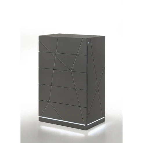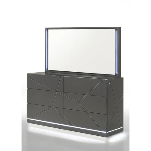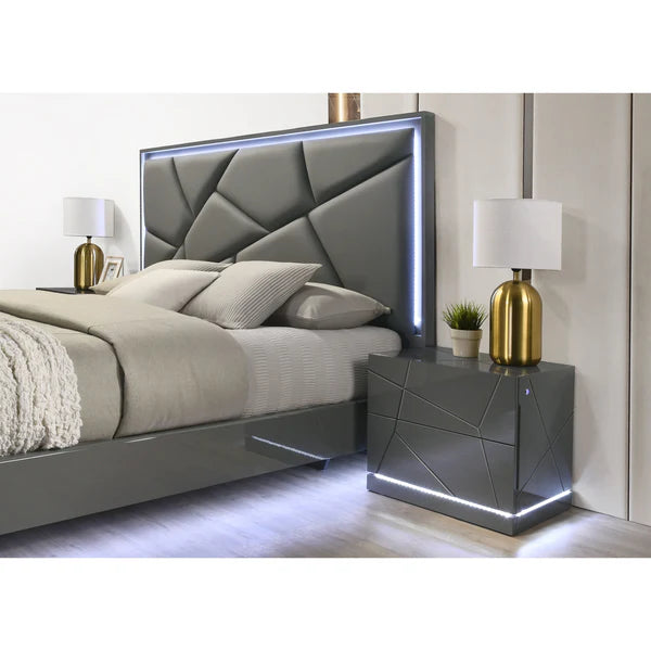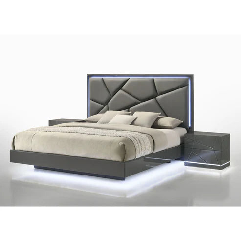 The B86 Lana Collection is the sophisticated grey counterpart to our high-gloss black series. It maintains the same futuristic DNA, featuring an Integrated LED System that spans the entire suite. The sleek Grey High-Gloss finish, paired with a premium PU upholstered headboard, creates a modern, calming environment that doesn't sacrifice on "wow" factor. With a platform design that requires no box spring, the B86 Lana is the pinnacle of contemporary bedroom luxury in a versatile grey palette.