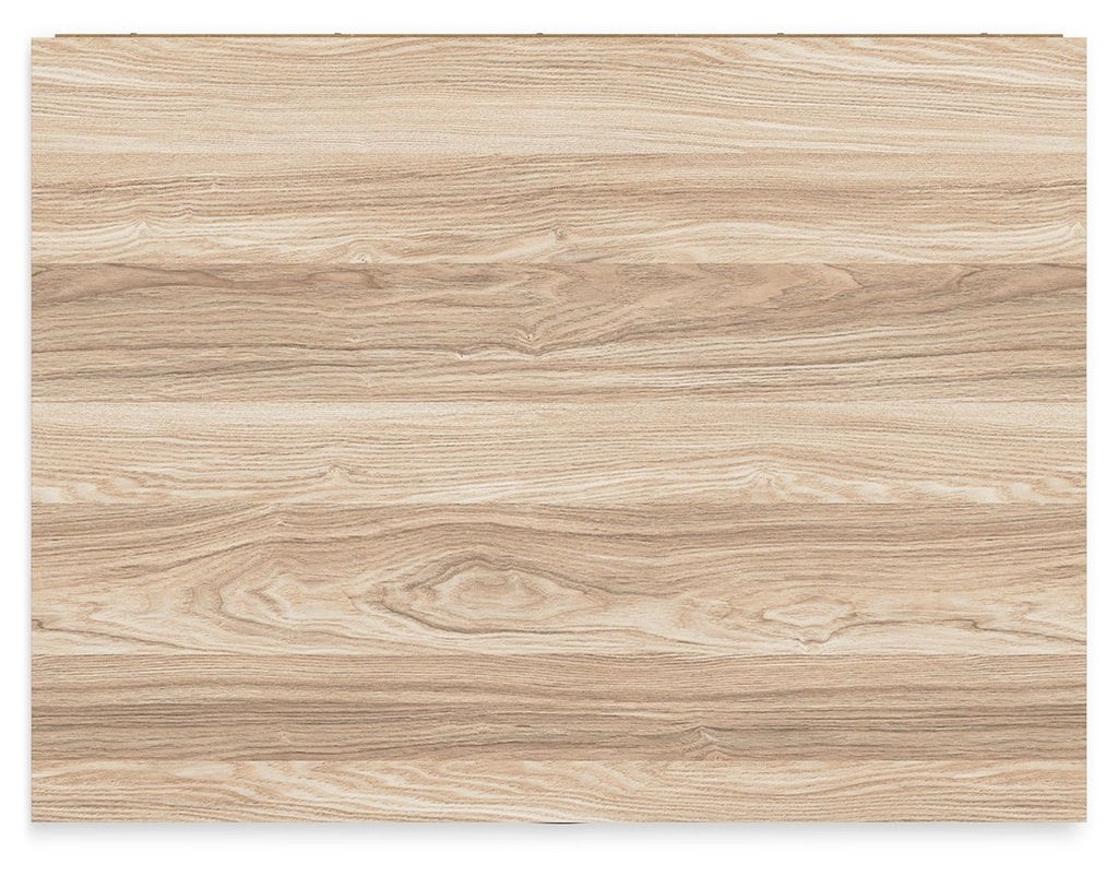 - Two-tone finish (dry, light finish over replicated oak grain; light chevron pattern)